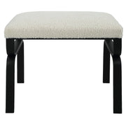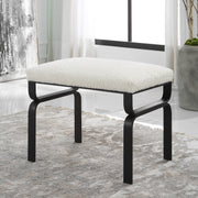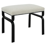 Displaying A Streamlined Black And White Design, This Small Bench Is Supported By A Curved Satin Black Iron Base With A Plush Upholstered Seat In White Faux Shearling.