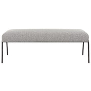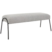 Inspired By Scandinavian Designs, This Bench Showcases Elegant Curved Lines With A Chiseled Iron Frame In A Natural Aged Black Iron Finish. A Casual Ivory And Warm Gray Textured Boucle Fabric Accents This Modern Look.