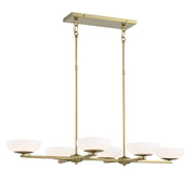 George Kovacs Scale - LED 6 Light Island in Soft Brass Finish with Etched White Glass (Chandelier 40 in W x 20 in H)