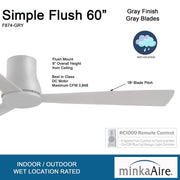 Minka Aire Simple Flush Hugger 60" Grey Outdoor Ceiling Fan with Remote