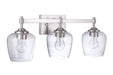 Created to complement your lifestyle, the updated classic vanity collection, Stellen, is the perfect combination of large clear seeded glass curved shades and minimal back plate available in four sizes from a single light to four light vanity.