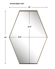 This Hexagon Mirror Features A Contemporary Style Using A Stainless Steel Frame Finished In A Plated Brushed Brass, Surrounding A Floating Style Polished Edge Mirror. May Be Hung Horizontal Or Vertical.