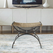 Our Playa Small Bench Showcases A Handwoven Seat Made Of Natural Seagrass Supported By An Elegant Curved Metal Base Finished In Brushed Gunmetal.